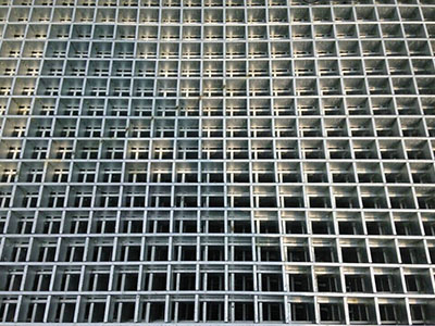 一般的钢格板是用压力焊机通过高压电流,然后将通过校直处理过的扭绞方钢压进扁钢的敞开式原版钢格板。(一般是长6000毫米,宽995毫米),终究再通过人工切开,进行包边而成型。